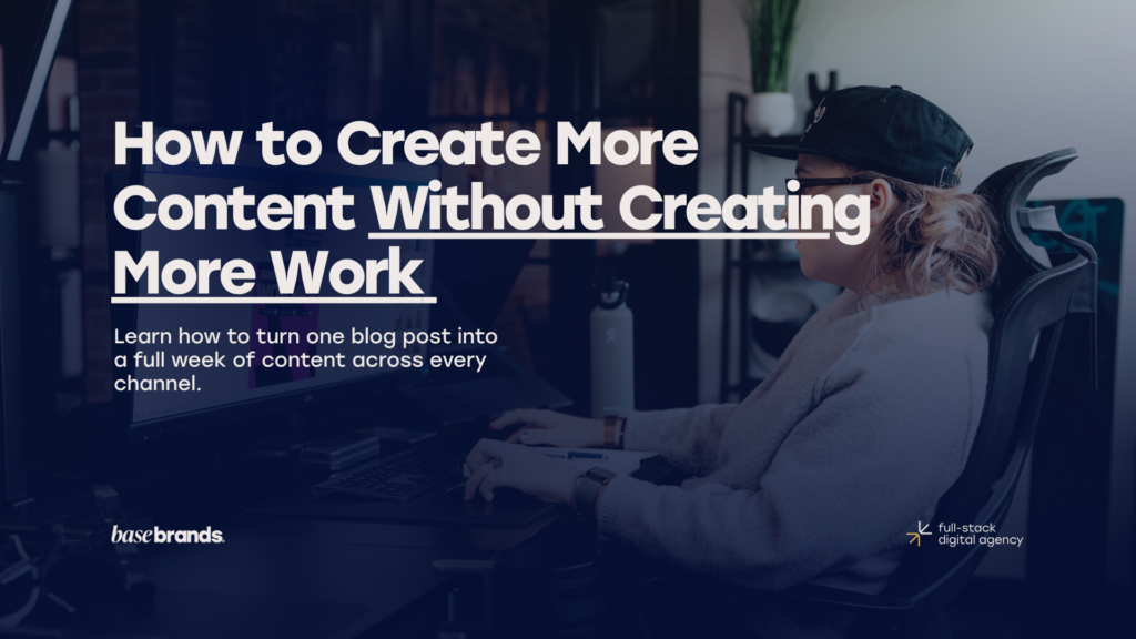 At Base Brands, we operate what we call a content engine. It’s a five-step process that takes a single idea and turns it into a full week of content across every channel, from blog, newsletter, social media and video. The same system works whether you have a team or you’re doing it all yourself.